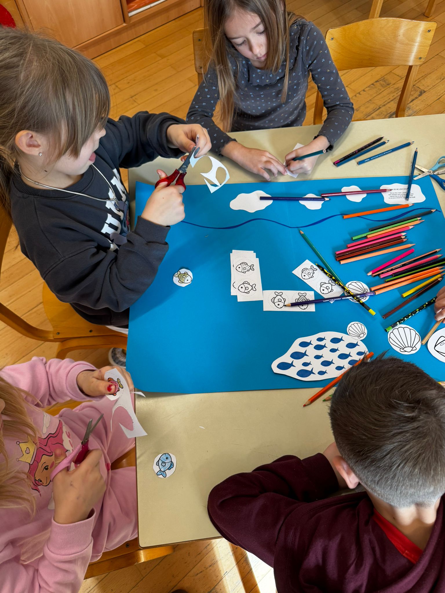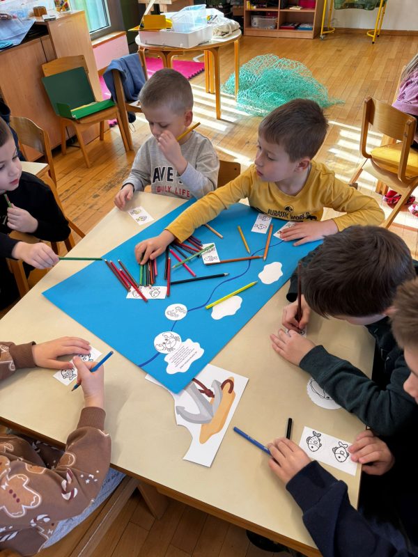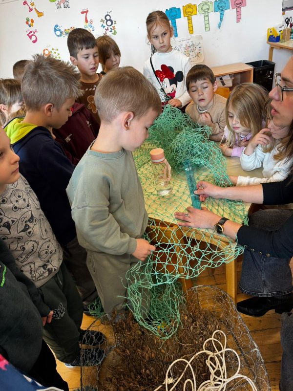 Središnji dio radionice činila je aktivnost „Dio meni, dio tebi“. Kroz igru i iskustveno učenje djeca su promišljala o tome kako njihove današnje odluke mogu utjecati na sutra. Iako još ne poznaju pojmove poput „održivog ribolova“, vrlo dobro razumiju ideje pravednosti, dijeljenja i brige za budućnost. Kao što se moglo i očekivati, u prvom krugu ribolova djeca su pomogla Pijeru uloviti svu ribu. No, kroz razgovor i ponovljeni pokušaj, brzo su zaključila kako je potrebno ostaviti dio ribe i u moru kako bi je bilo i za sutra, prekosutra…