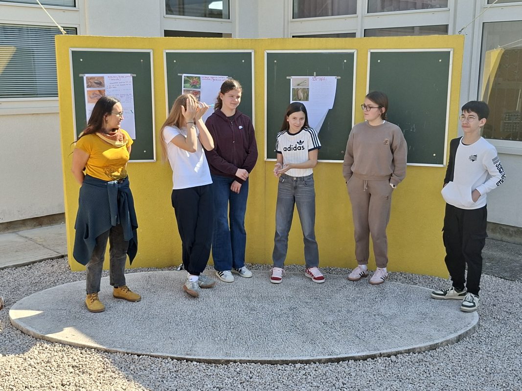 U drugom dijelu radionice učenici su naizgled kompleksne pojmove iz ekologije uspjeli pojednostavniti, razumjeti i pretvoriti u mali kazališni komad. Na zanimljiv su način prikazali kako priroda ima rješenje za smanjenje viška CO₂ iz atmosfere njegovim vezanjem i pohranom u tlu i šumama. Glavni protagonisti priče bili su CO₂, stablo i tlo, a pouka priče bila je “sadimo šume“. Druga skupina naučila je što je primarna sukcesija – proces koji započinje lišajevima, a završava klimaks zajednicom, odnosno razvijenom šumom bogatom vrstama. Treća skupina provela nas je kroz zanimljivo “putovanje“ micelija i biljke u potrazi za mineralnim tvarima, pritom objašnjavajući pojam mikorize.